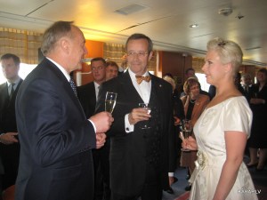 Вчера на работающем по маршруту Рига — Стокгольм прекрасном пароме «Silja Festival», который принадлежит Эстонии, по случаю визита в Латвию президента ЭР был проведен прием в честь президента Латвийской Республики Андриса Берзиньша и его супруги.
