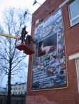Это его самая большая коллажная работа. Его размеры — три на пять метров. Открытие банера -10 ноября- совпало с одной из самых любимых дат мастера: с Днём рождения его мамы. В этом году ей исполнилось бы 100 лет. Увы, тикин Мариам 9 дней не дожила до заветной даты.Кarap.lv скорбит вместе с художником. А за банер, конечно же, радуется.