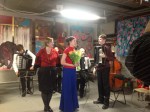 Свободное расположение картин позоляет непринужденно фланировать по всему отведенному для экспонирования полотен пространству. А оно, надо признать,весьма и весьма большое. Некоторые вещи лежат под рукой — в ящиках: бери, разглядывай, радуйся, приценивайся… Амплитуда стоимости произведений велика — от 10 латов (да, да, можно высмотреть и такое…) до полотен, за которые придется выложить несколько сотен латиков. Открытие галлереи Карине и Анитры украсили звуки муыки. Их воссоздавали юные аккордеонисты, которые играли в слаженном ансамбле, выпестованном Надеждой Писаревой из ДМШ им.П.Юрьяна.