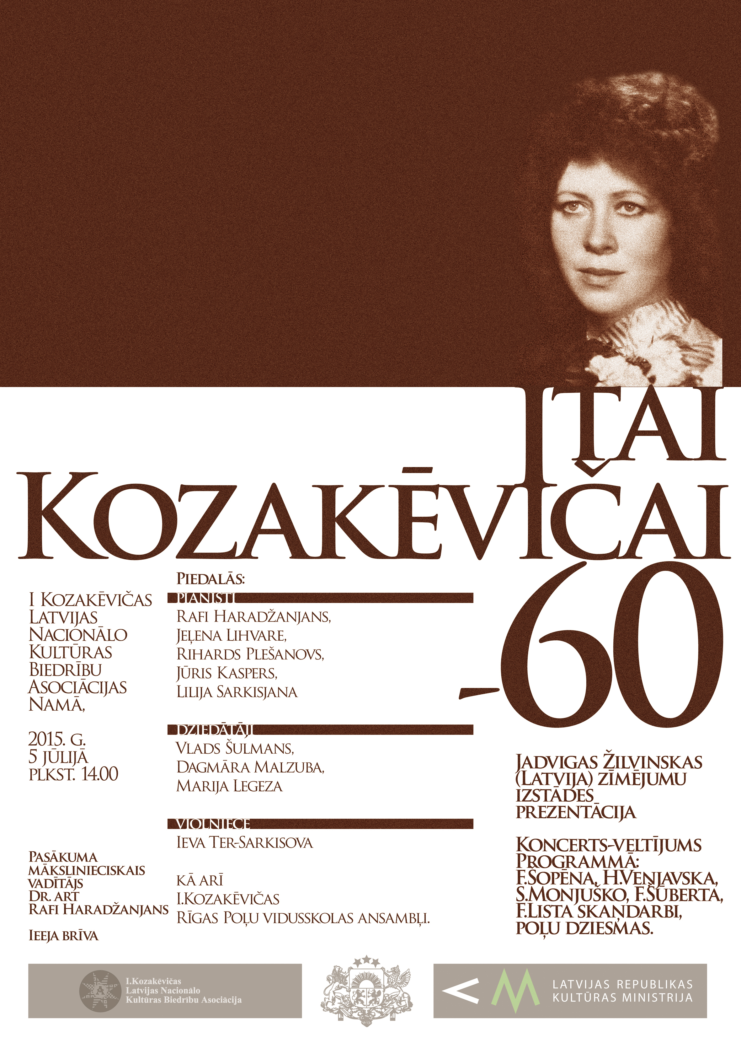 В воскресенье 5-го июля 14.00 по адресу Рига, Слокас, 37 состоится разнообразный и красивый концерт польской и латышской музыки, а также презентация выставки рисунков Ядвиги Жилвинской (Латвия). Это — посвящение юбилею Иты Козакевич, видной деятельницы Атмоды, одной из главных основательниц Ассоциации национальных культурных обществ Латвии (АНКОЛ), которая ныне носит ее имя.