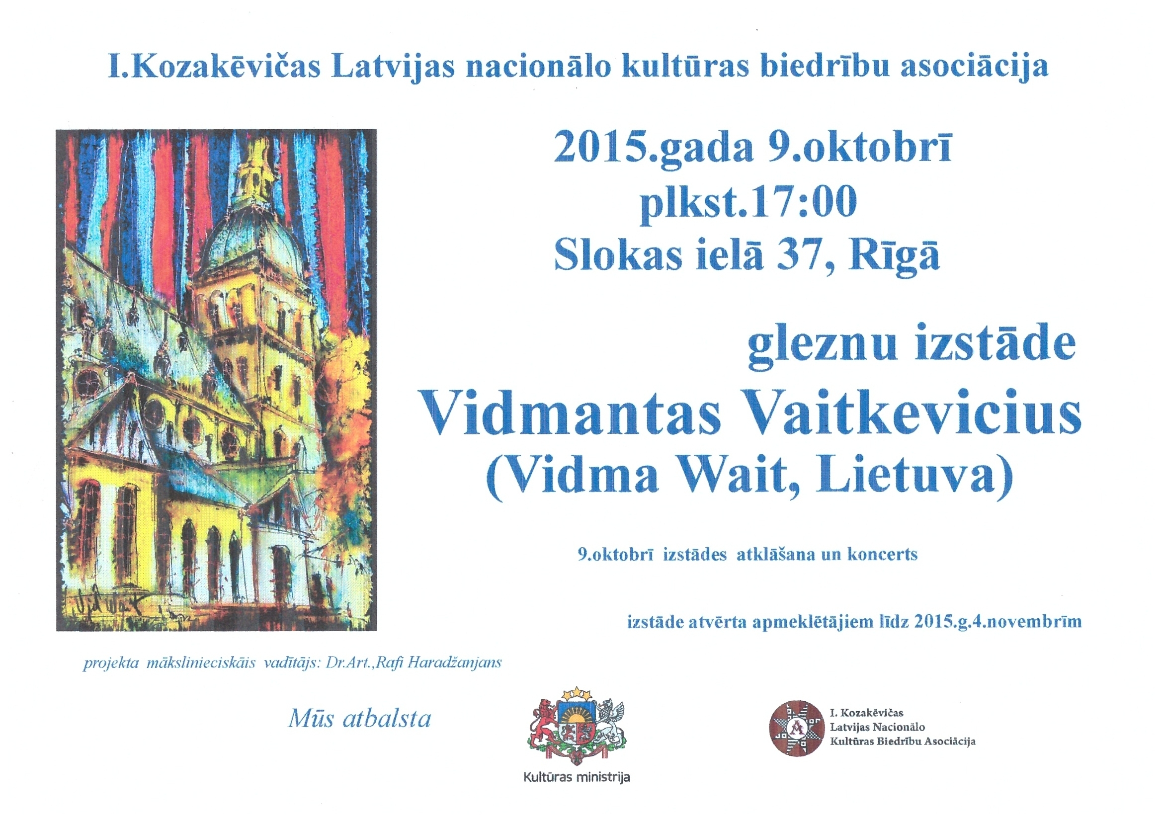 На прошедшем открытии выставки выполненных на шелке картин литовского мастера Вадмы Вайта в развернутом молодежном концерте запомнились яркие выступления Розы Багоян с собственными стихами и Патриции Аветисян, спевшей три различные эстрадные песни. Выставка организована по инициативе председателя АНКОЛ Раффи Хараджаняна, который изобретательно и с юмором вел церемонию открытия вернисажа. Вход на просмотр картин Видмы Вайта свободный (адрес: Рига, ул. Слокас, 37).