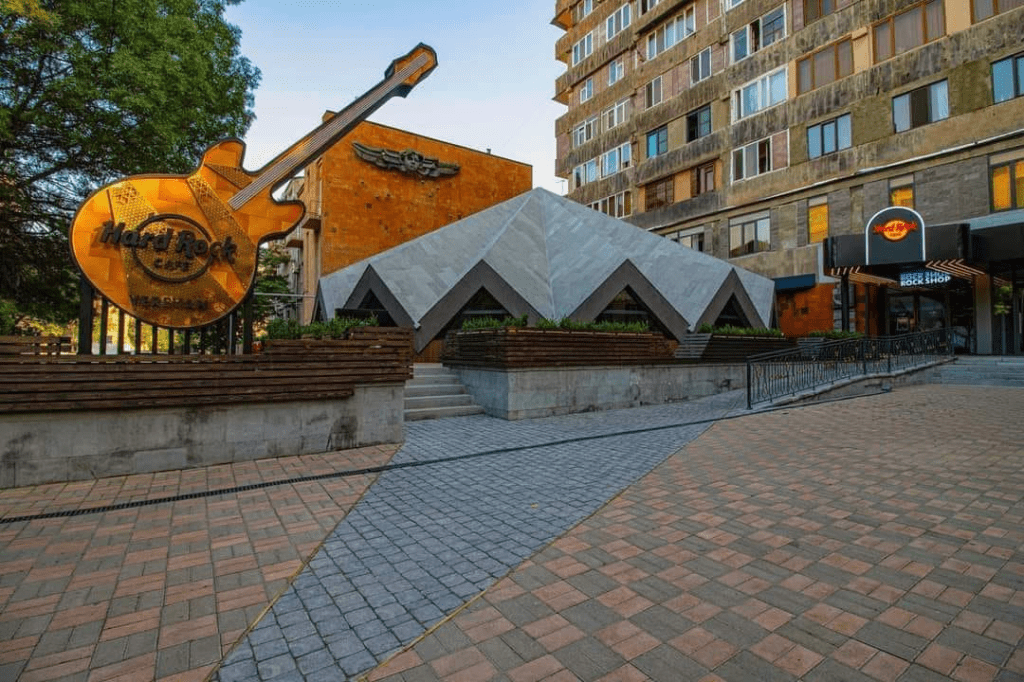 Hard Rock Cafe официально открылся в Ереване на улице Пушкина: Пл. заведения более тысячи (!) кв м. Изюминкой ресторана является оригинальная гитара, на которой играли The Beatles, а также личные наряды Элвиса Пресли, Майкла Джексона, Шер, Мадонны, гитариста группы The Rolling Stones – Кита Ричардса и многих других известных мировых звезд.