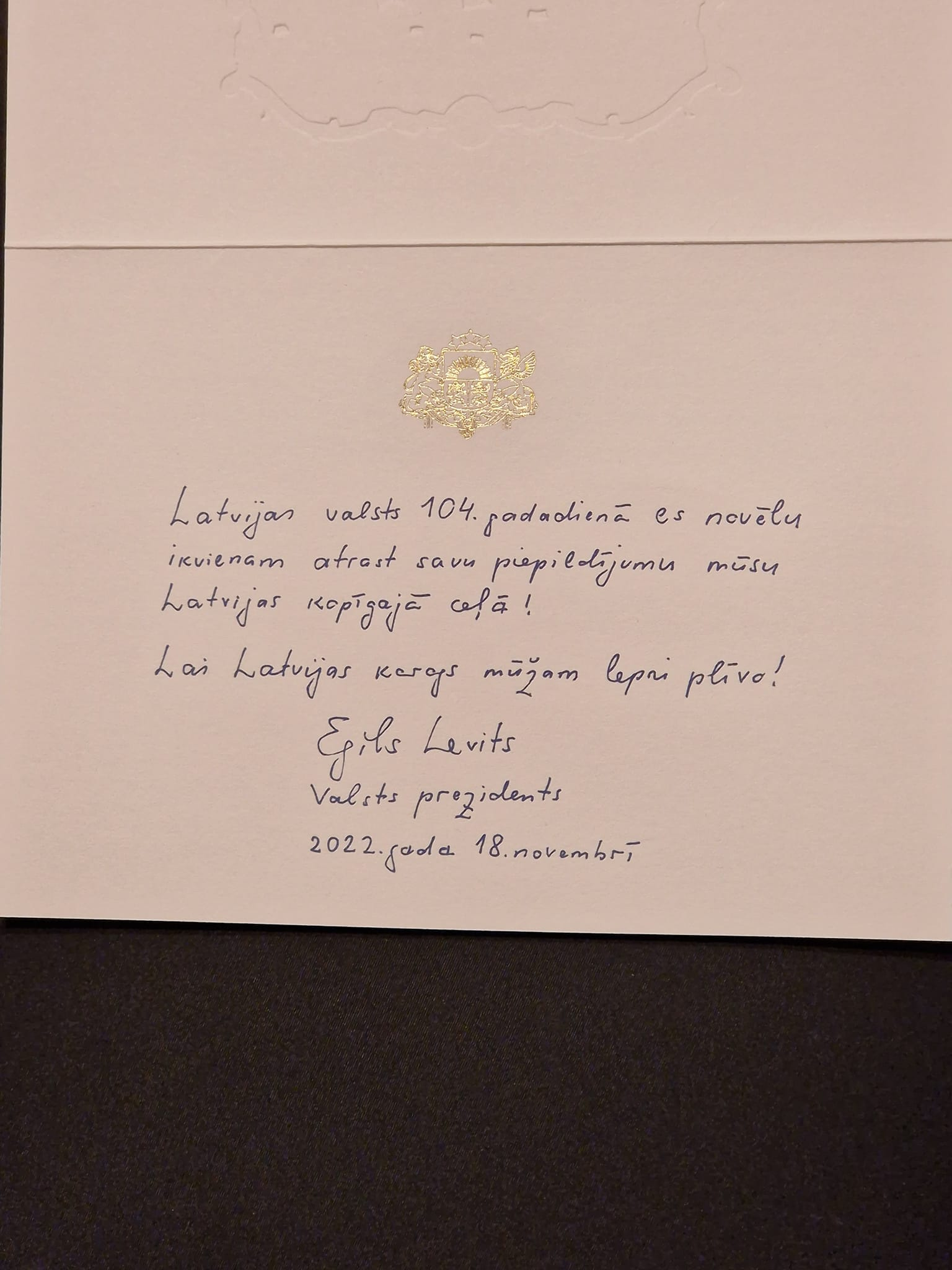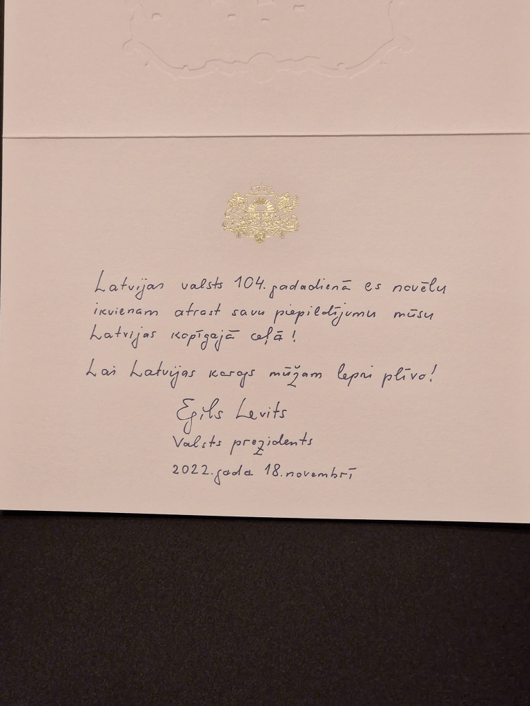 Րաֆֆի Խարաջանյան. Ինչպես Լատվիայի մի շարք այլ քաղաքացիներ, Երկրի Անկախության տոնի առթիվ պատիվ էմ ունեցել տոնական շնորհավորանք ստանալ Լատվիայի նախագահ Էգիլս Լևիցից։