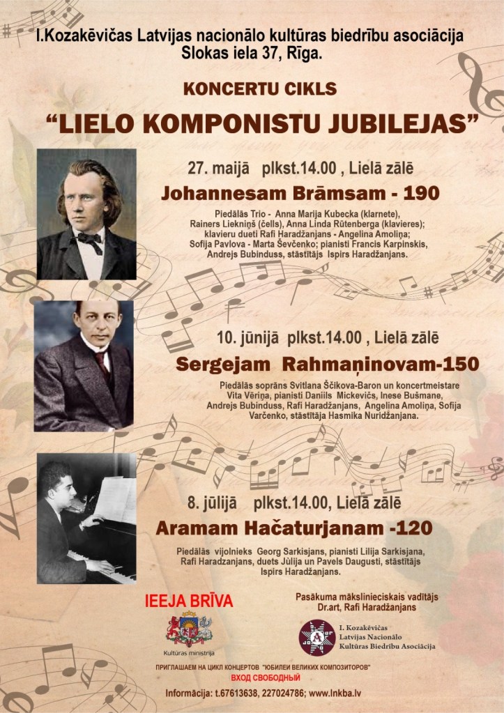 ЧЕСТВУЕМ ВЕЛИКИХ КОМПОЗИТОРОВ (Дом АНКОЛ в Риге, вход на концерты без билетов)