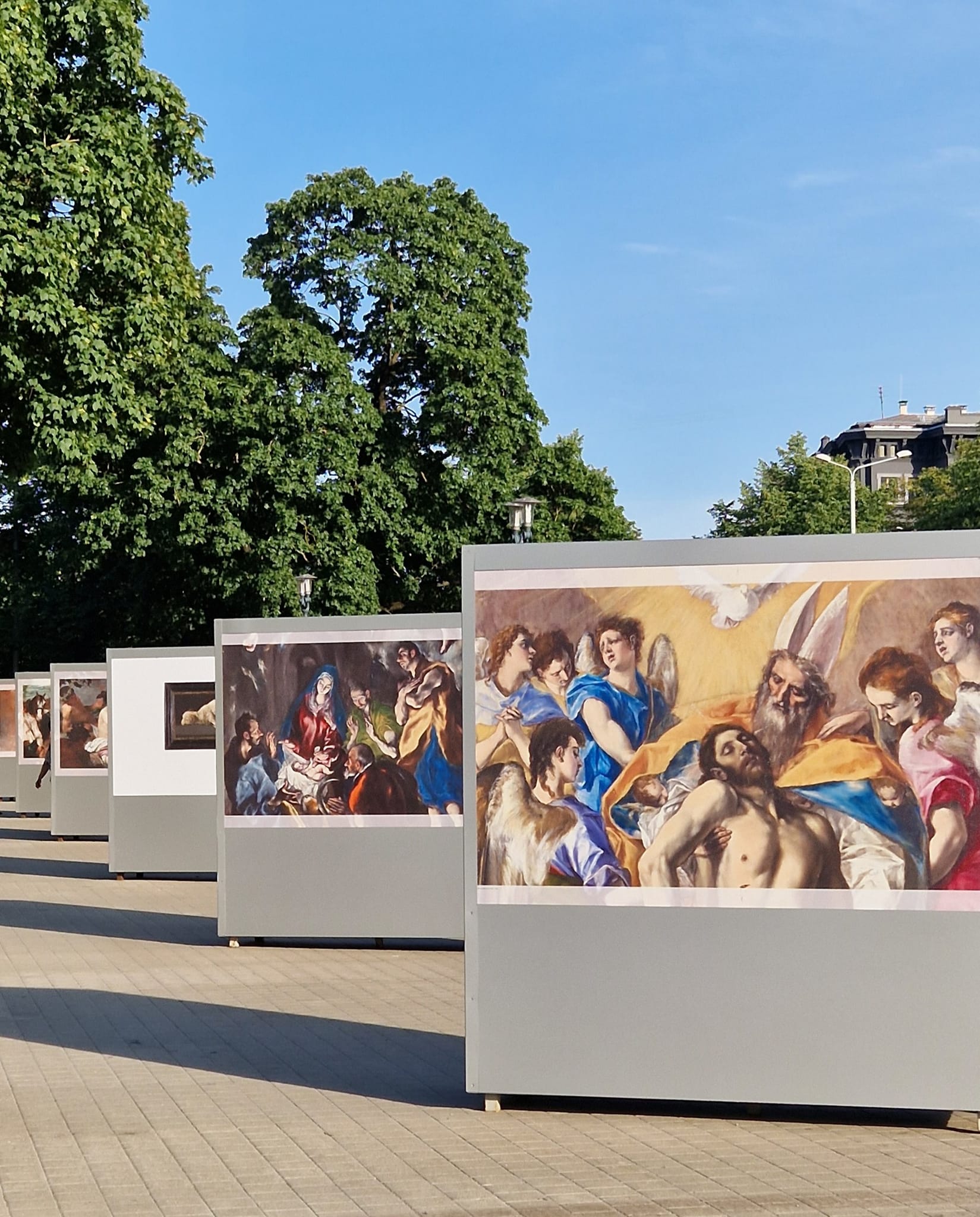 Dr.art Раффи Хараджанян: «Картины — их 50, они из мадридского Прадо — в крупноформатных репродукциях (важнейших фрагментах прославленных работ) до 14 августа выставлены на рижской Эспланаде. Удовольствие их видеть — несомненное! На боковых частях стендов пусть мелко, но все же даны, скопированы картины полностью, целиком. Неспешное прохаживание на свежем, хотя и слегка обензиненном, воздухе и разглядывание со всех сторон — бесплатное. А соответствие показываемой выставки интеллигентской составляющей города Рига, ее просветительское зерно — подкупают и даже воодушевляют. Особенно, после ряда выползших в ковидные годы на улицы и парки столицы более, чем малоубедительных экспериментов местной тв.молодежи, заставляющих поохивать и недоуменно пожимать плечами. Во всем нынче представленном фигурирует очень и очень позитивный момент: многие рижане и гости города впервые для себя узнают о музее Прадо как таковом, взглянут на работы Эль Греко или Гойи — пусть и частично представленные.